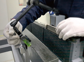 礦物鑄件又稱“人造大理石”“樹脂混凝土”,是用天然石碎料/鵝卵石、黃砂等為骨料,改性環(huán)氧樹脂等為膠凝材料,加入部分填料和外加劑經(jīng)過混合攪拌、振動密實(shí)而形成的一種新型高分子復(fù)合材料。其具有的復(fù)雜外型的成型能力和整合能力,高精度,良好的吸震性、熱穩(wěn)定性及耐腐蝕性等優(yōu)勢。